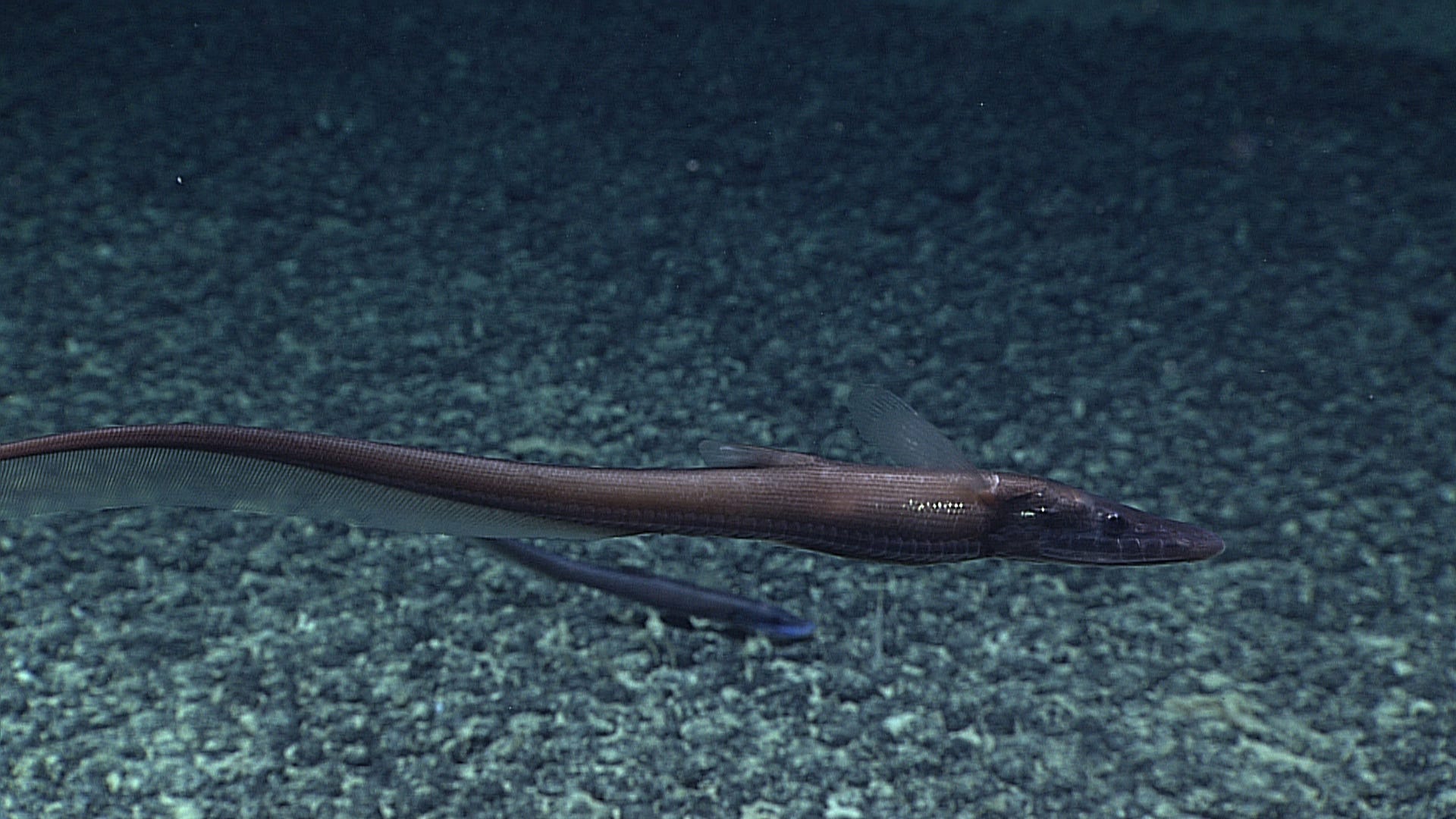 It lands in soft sediment, raising a small cloud of dust. A pipe is lowered from the ship and attached to the machine’s back. The pipe is 4.5 kilometers, or close to 3 miles, long. That’s how long it needs to be to reach the machine now sitting on the seafloor.