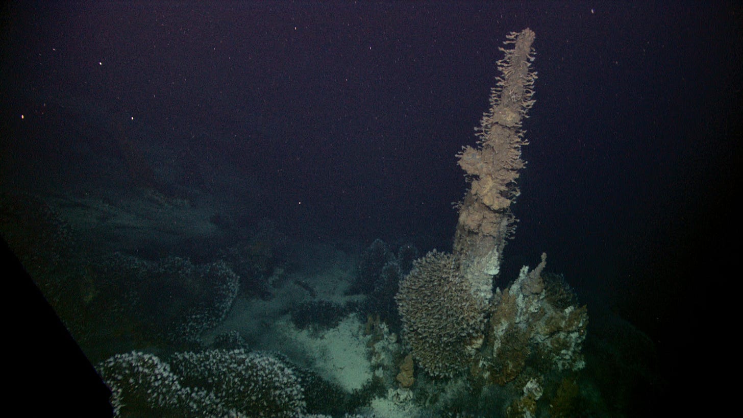 But there are also other ecosystems on the table for mining: hydrothermal vents and seamounts. There, mining machines would dismantle the mineral-rich formations, leaving bits of metals and minerals floating in the water. This very different kind of sediment would likely have different impacts on nearby life.