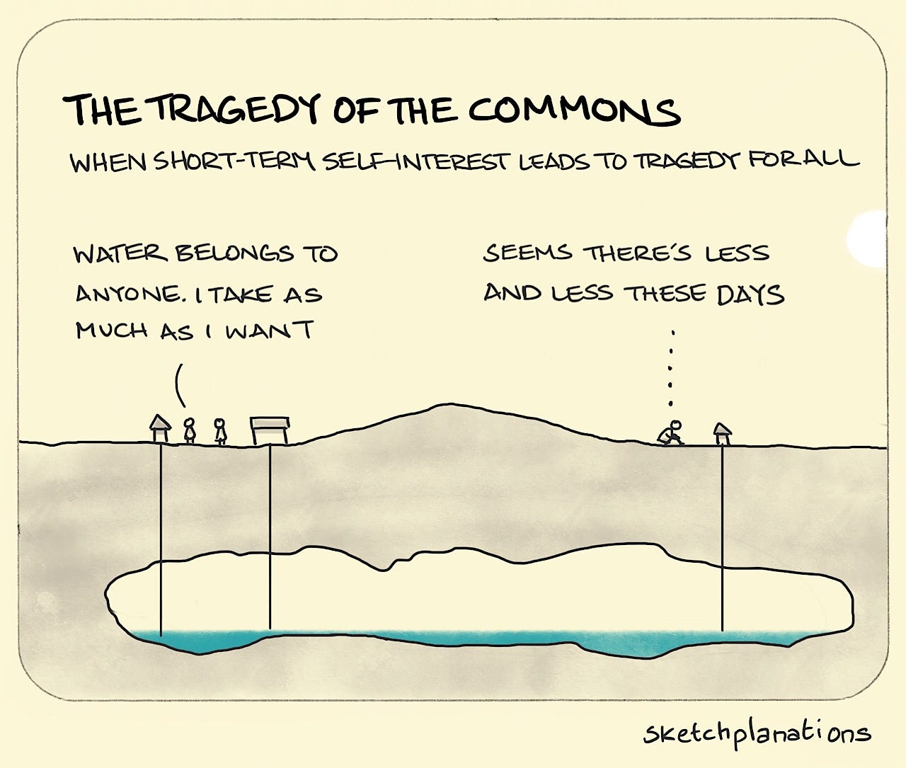 Keron: So the tragedy of the commons simply says that if two persons or two groups want the same thing, unless they come to an agreement about how it’s going to be stewarded, they’ll both keep extracting that resource [until there’s none left]. Because no one wants to be the one to lose from walking away, right?